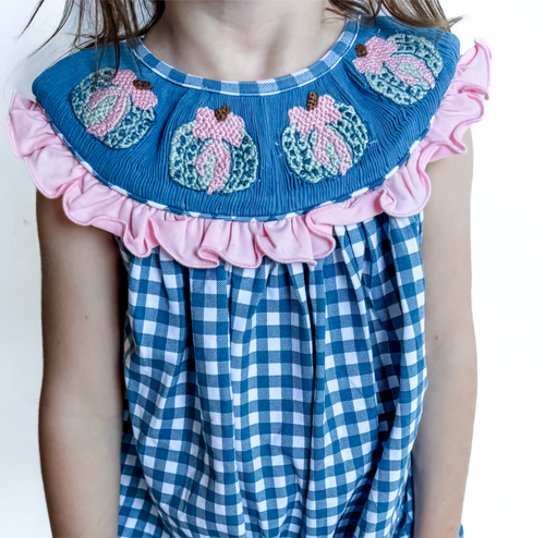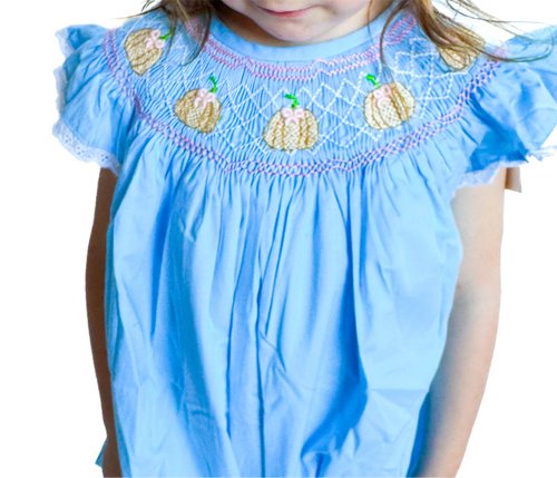 Girls Pretty Priss Pumpkins Smocked Bubble![]()  - Regular price